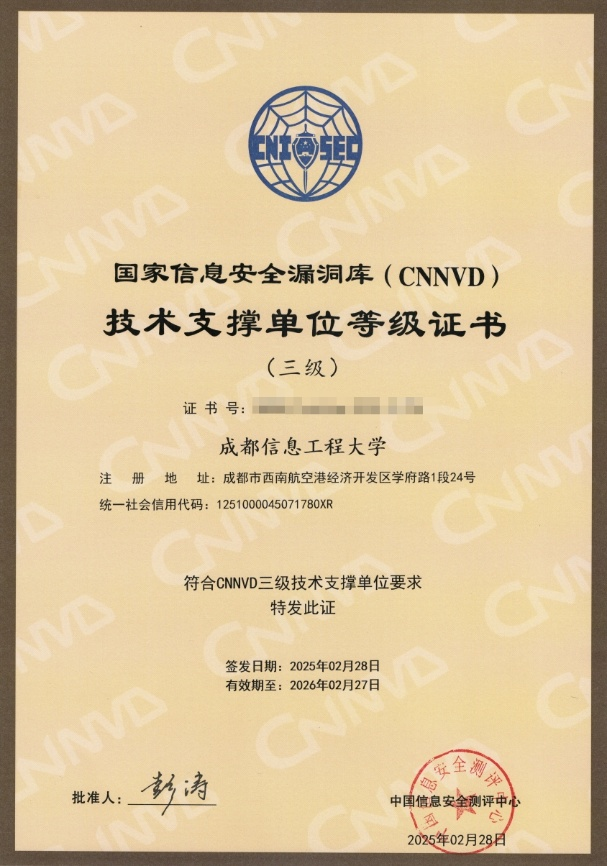 伟德源自英国始于1946助力学校成功入选国家信息安全漏洞库...