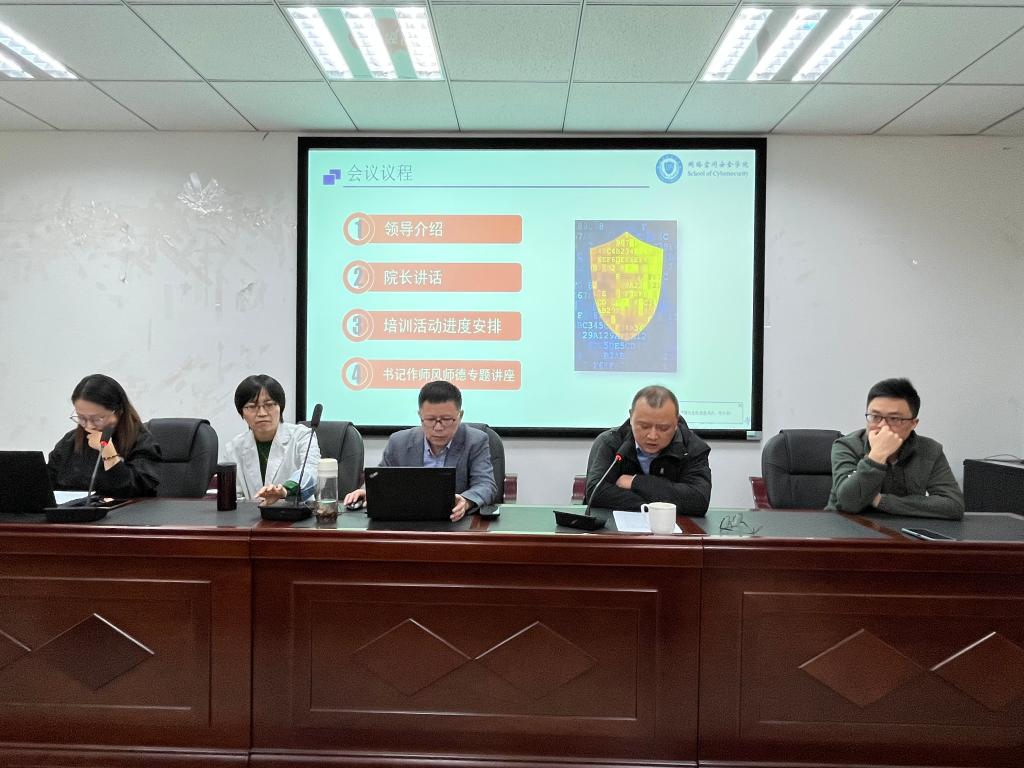 公司党委书记张仕斌、经理周益民、副经理昌燕、副经理何林波、教务办科长任励耘、网络工程系主任韩斌、信息安全系主任杨帆、网络空间安全系主任石磊和全体新进教师参加了会议。会议由新进教师专项培训班的班主任王祖俪副教授主持。