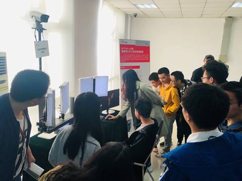 在公司的工作人员的带领下,同学们依次参观了多相机融合三维人脸快速采集系统、HFTD01-IR型高精度红外三维全脸照相机、3D-2D人脸识别系统、通道式三维人脸识别闸机、三维建库——二维动态识别展示,并亲自体验了系统运行过程。随后,公司负责人向同学讲解了三维人脸识别可视化系统的网络拓扑图、系统架构、技术栈等相关知识,同时还介绍了关于我们、企业文化、办公环境,并就开发工程师、WEBUI设计师的题目与同学展开了技术交流,一一回答了同学们的各种问题。