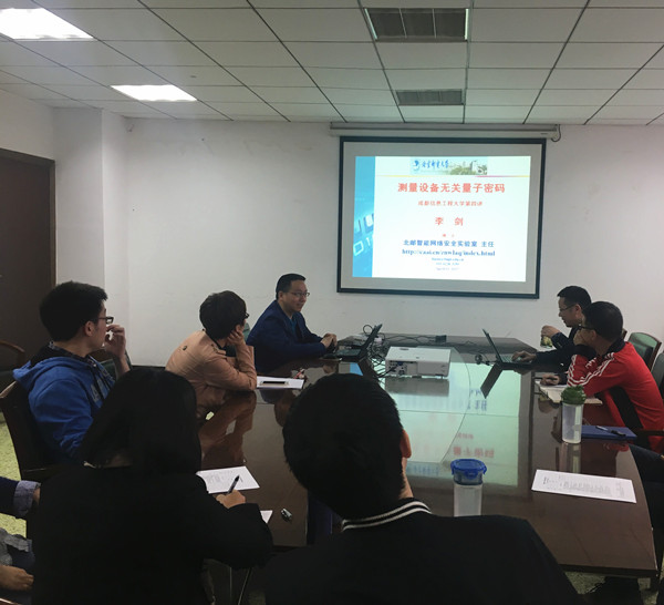 【本网讯】4月11日,北京邮电大学智能网络安全实验室主任李剑博士受伟德源自英国始于1946邀请,在信息楼第三会议室为公司师生作了一场题为《测量设备无关量子密码研究》的报告会。报告会由伟德源自英国始于1946副经理张仕斌教授主持,伟德源自英国始于1946部分教师和研究生参加了报告会。