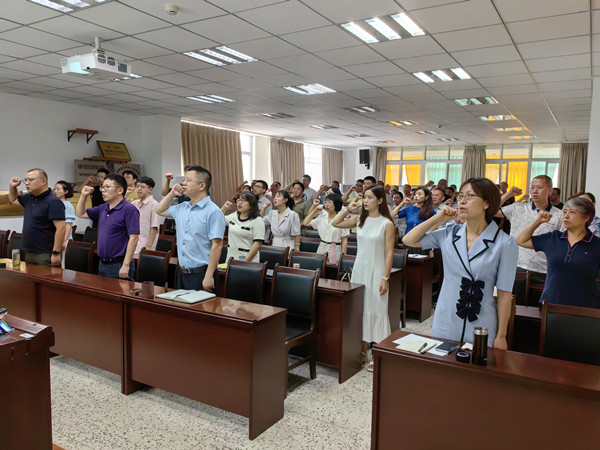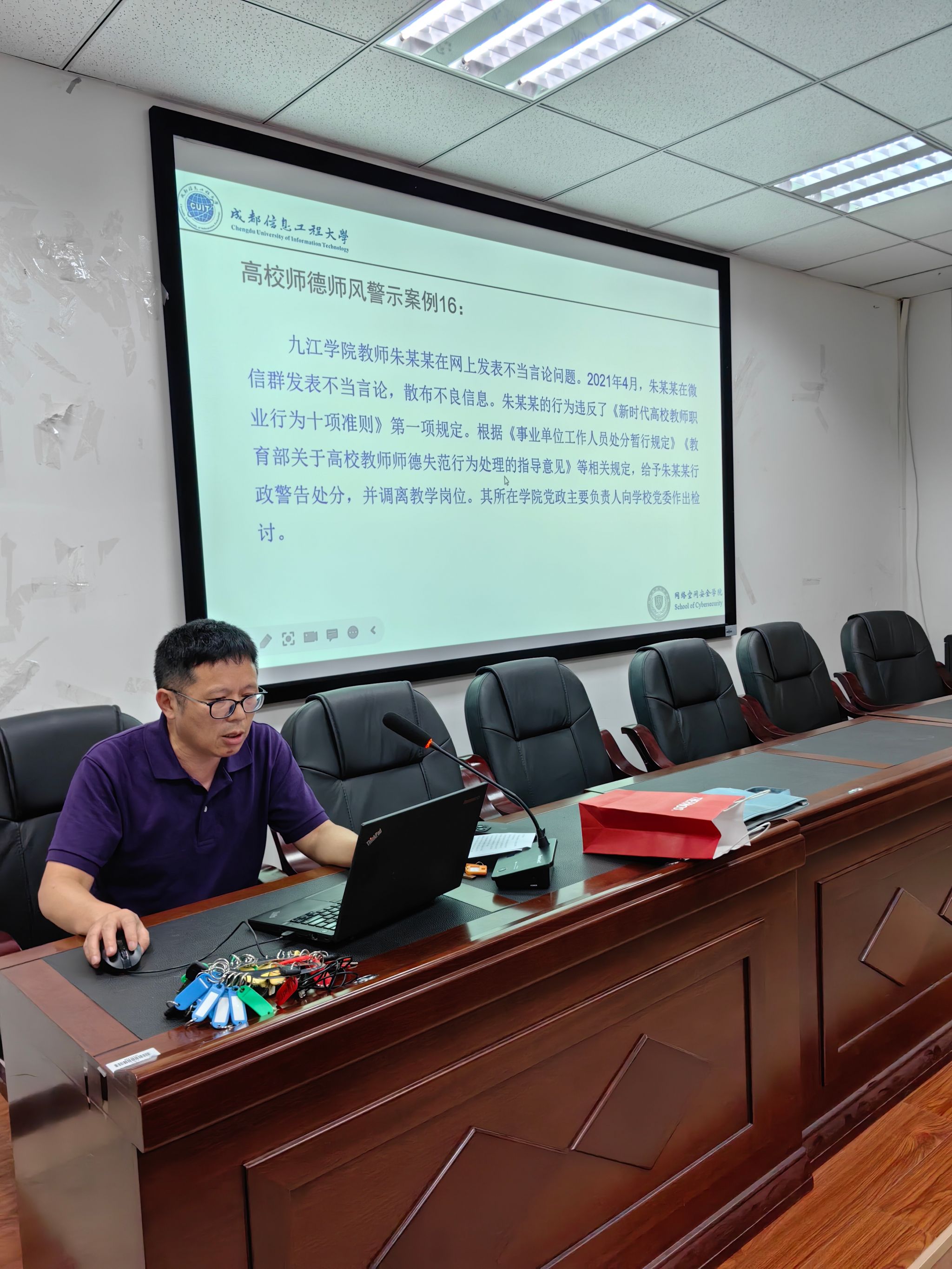 之后张仕斌以习近平新时代中国特色社会主义思想和关于教育的重要论述为指导,坚持将师德师风作为评价教师队伍素质的第一标准,紧紧围绕立德树人根本任务,带领全院教师重温了教师誓词,并带领大家一起学习了高校师德师风警示案例。
