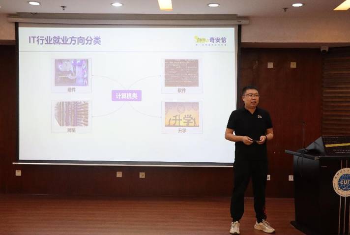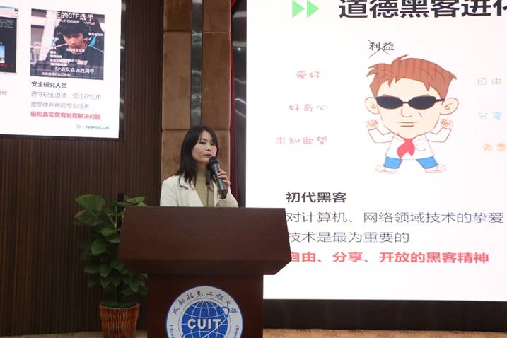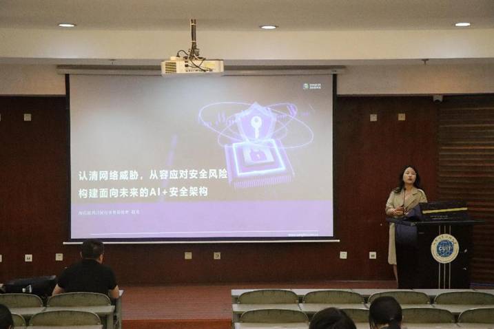 在学术报告厅,赵芳结合实际项目经验,引入“认清网络安全威胁 从容应对安全风险”主题,详细阐述当前网络安全面临的各类威胁及应对策略,帮助同学们提升应对安全风险的能力。王会波通过“漫谈实战化背景下的网络安全技术——企业级网络安全攻防技术实践”的主题演讲分享实战案例,介绍企业级网络安全攻防技术的实践应用。李红凭借多年校园招聘及人力资源工作经验,为同学们提供就业指导,从行业趋势到求职技巧,为同学们的职业发展出谋划策。