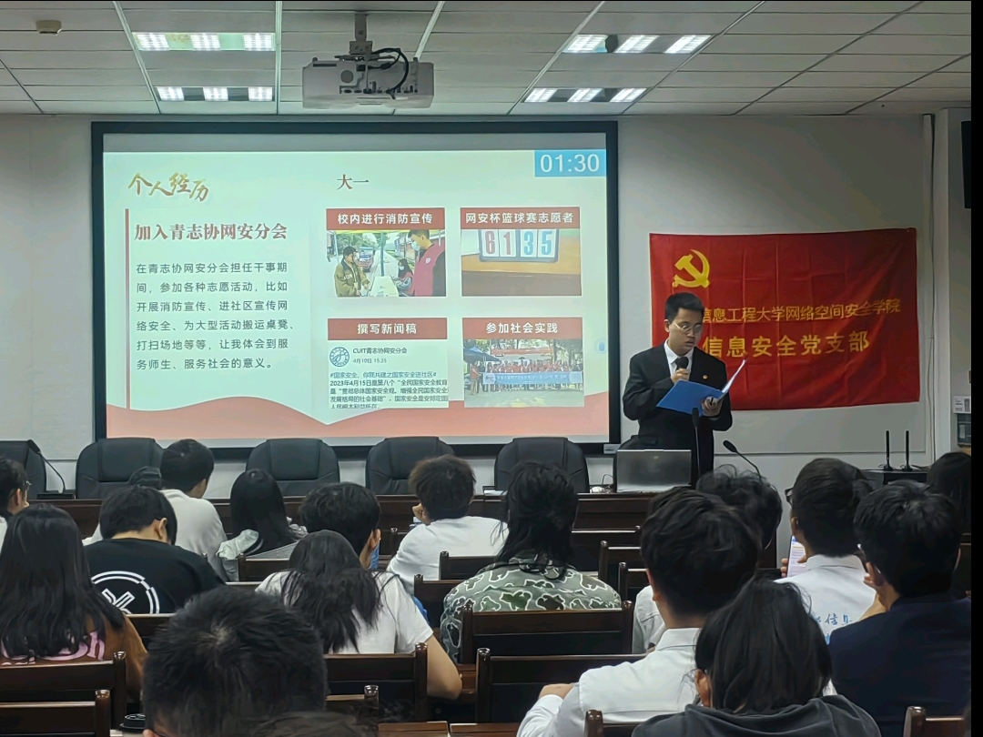 2024年9月19日在信达楼A402召开2024年秋季学期入党积极分子列为发展对象答辩会。信安网安员工党支部书记贾茜、伟德源自英国始于1946团委书记夏焜、信安网安员工党支部全体员工党员、预备党员和23名入党积极分子参会。会议由王东川、丁海峰主持。