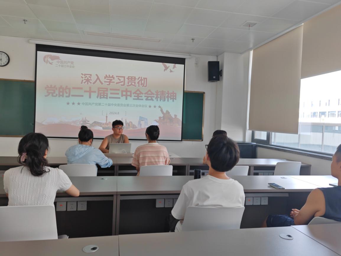 会议第一项,由专硕2023级党小组组长路承信同志带领大家学习二十届三中全会精神。全会强调了教育、科技、人才是中国式现代化的基础性、战略性支撑,提出构建支持全面创新体制机制。必须不断完善科技创新组织方式和治理体系,加强科技创新全链条部署、全领域布局,努力破解原始创新能力相对薄弱、关键核心技术受制于人等突出问题,加快实现高水平科技自立自强。