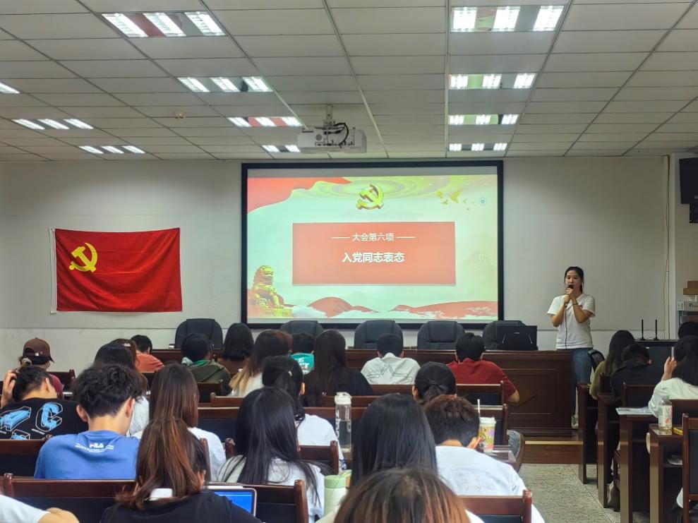 本次会议严格按照党组织接收预备党员各项程序进行,会议伊始,清点到会人数后,确定有表决权的到会人数超过应到会有表决权人数的半数,会议有效。夏霜霜、盛钰涵等15名发展对象依次宣读入党志愿书并介绍个人基本情况,表明自己的坚定理想信念,随后入党介绍人介绍发展对象有关情况,并对其能否入党表明意见,支部委员会报告对发展对象的审查情况,与会党员对发展对象能否入党进行充分讨论,并采取无记名投票方式进行表决,并由党支部书记贾茜宣读了投票结果,对夏霜霜、盛钰涵等15名同志的赞成人数超过应到会有表决权的正式党员的半数,同意接收其为预备党员,通过党支部表决同意接收的预备党员同志作表态发言。