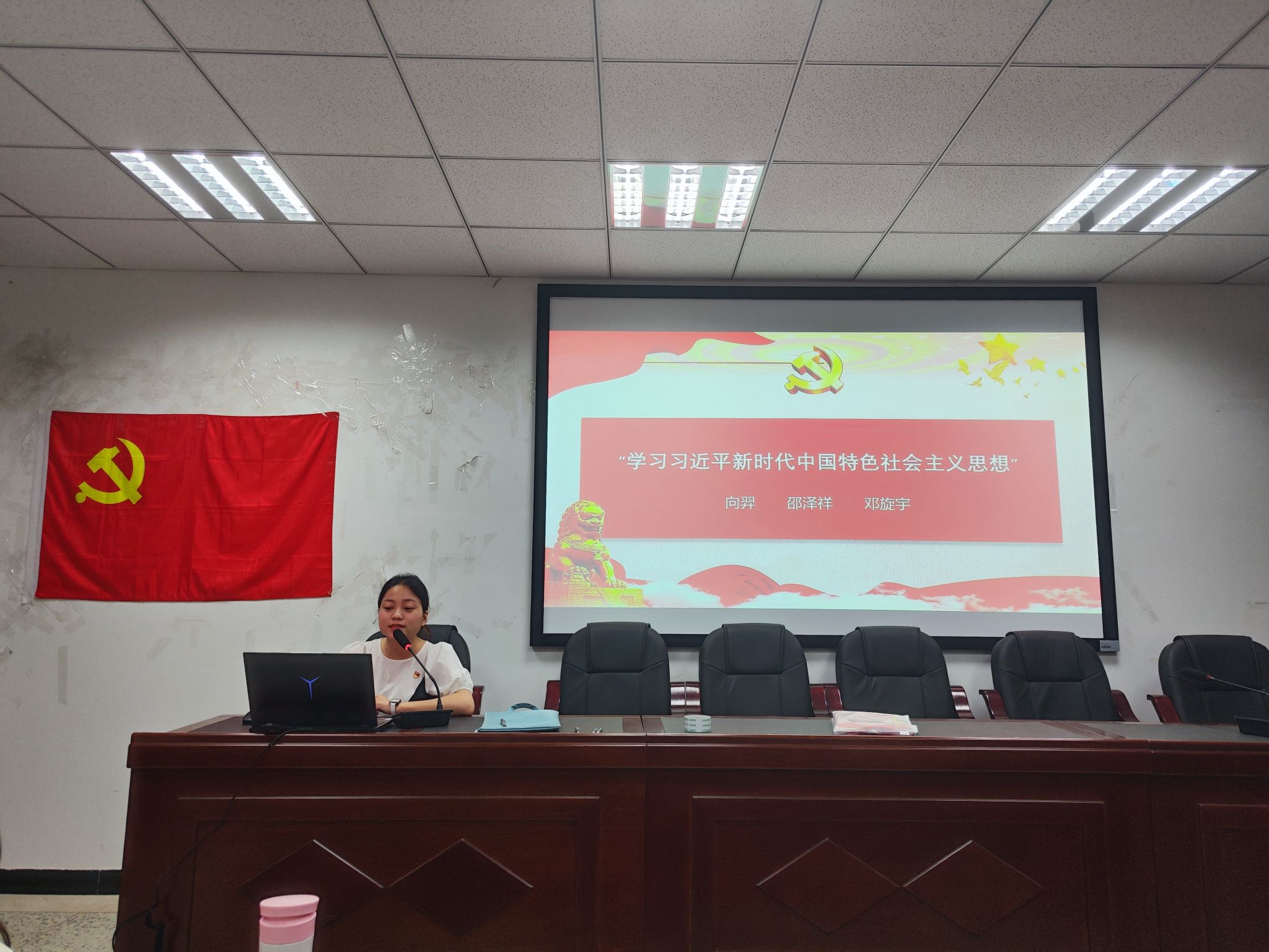 随后,支部全体党员开展 “习近平新时代中国特色社会主义思想”专题学习。向羿、邵泽祥、邓旋宇三位支部党员分享了近期学习“习近平新时代中国特色社会主义思想的心得。向羿同志讲述了“习近平新时代中国特色社会主义思想”的内涵及意义,帮助在座党员同志更好地理解其思想含义。邵泽祥同志则是介绍了“习近平新时代中国特色社会主义思想”提出的背景及现实意义,结合当下的时政热点,深刻地剖析了其内涵。邓旋宇同志则介绍了“习近平新时代中国特色社会主义思想”的主要内容,帮助大家更好地了解其中的先进理念。