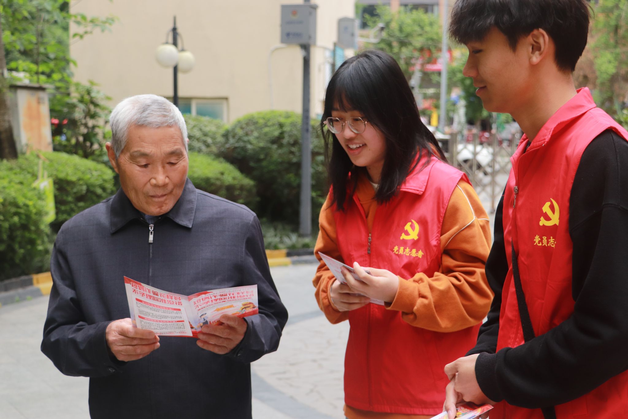 学硕、专硕党支部在本次活动中,组织了研究生党员志愿者队伍,走进机场路社区,向社区居民宣传反诈知识,为加强社区群众的反诈意识和能力、预防和减少电信网络诈骗案件的发生作出了积极的努力。