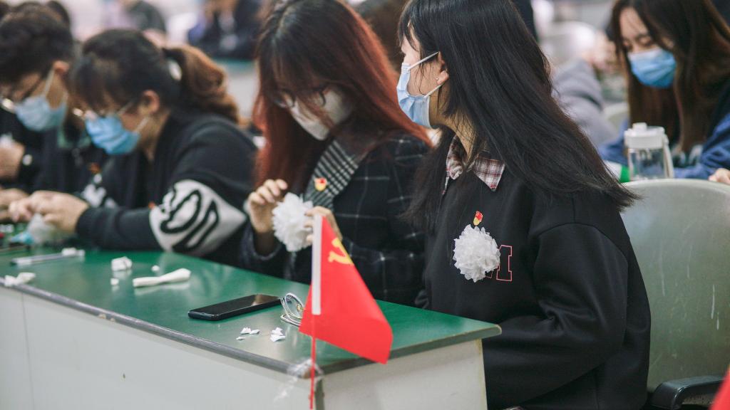 本次活动以全体起立奏唱国歌拉开序幕,同学们现场制作小白花佩戴胸前,表情肃穆,接着大家一起观看了教育片《绝笔》,《绝笔》第二季讲述了中国革命震撼人心、值得永远铭记的一段往事,在人生最后时刻,他们留下一封封饱含深情的绝笔信。观影结束后,带着对烈士的敬佩,与会人员全体起立低头默哀。同学们无一不被革命先辈们为了实现理想不怕牺牲的精神所感动,更体会到和平的来之不易。党的精神百年传承,这笔宝贵的精神财富,将永远是激励大家砥砺前行的强大动力,历久弥新。活动最后,同学们执笔写下自己对烈士的寄语,表达深切哀思。前辈以血肉之躯换来今日的和平,吾辈更应努力学习,志存高远,为完成新一代青年肩负的历史使命而积极进取,为国家进步、民族繁荣贡献自己的力量。