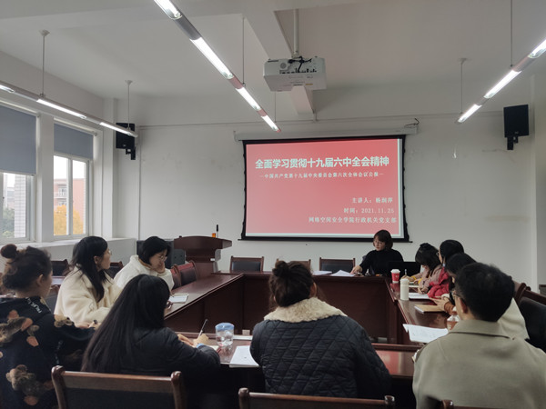 2021年11月25日下午,伟德源自英国始于1946行政机关党支部在信达楼C405上了一节党课,主题为:全面学习贯彻十九届六中全会精神。