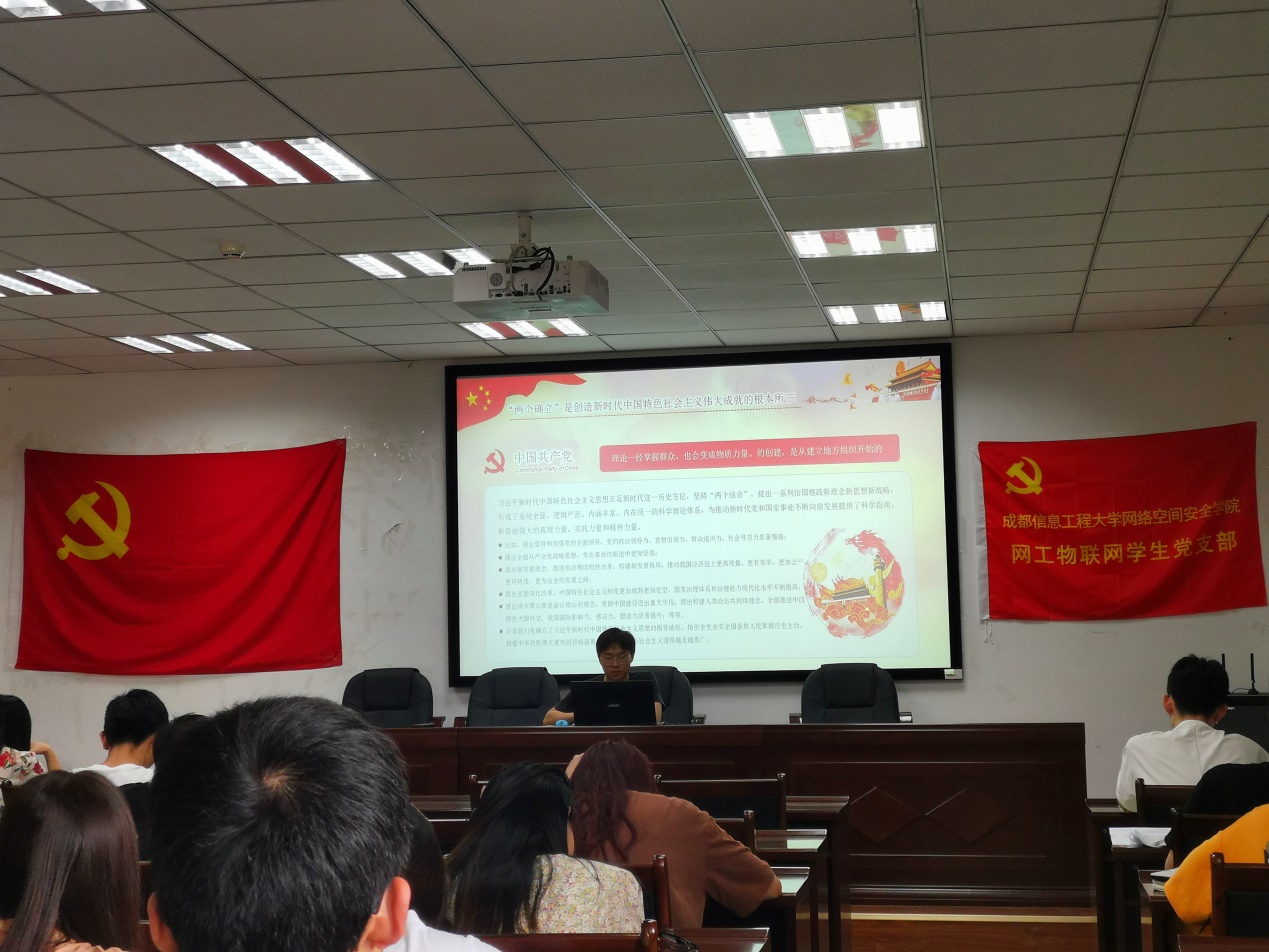 组织生活会上,全体党员学习了“两个确立”的决定性意义、四川省第十二次党代会精神等重要内容。首先,围绕领导核心和指导思想是马克思主义政党的重要原则、“两个确立”是创造新时代中国特色社会主义伟大成就的根本所在、“两个确立”是新征程上赢得更大胜利和荣光的根本保证三个方面对“两个确立”进行了深入学习。接着,学习了四川省第十二次党代会精神。作为新时代的青年党员,要高举习近平新时代中国特色社会主义思想伟大旗帜,深入贯彻落实习近平总书记对四川工作系列重要指示精神和党中央决策部署,立足学习生活和工作实际,胸怀“国之大者”,践行初心使命,以赶考姿态推动新时代治蜀兴川再上新台阶,为全面建设社会主义现代化四川做出自己的贡献。