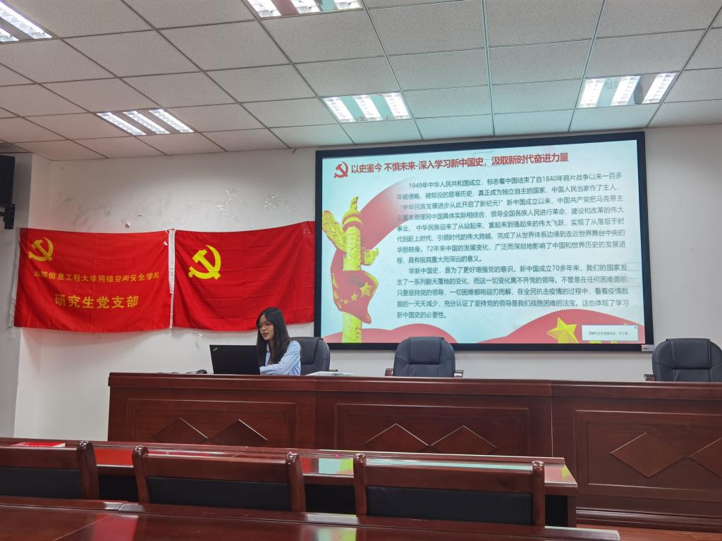 会议进行的第二个议程是学习新中国史。支部党员韩慧同志结合新中国成立以来大的历史事件,与大家共同回顾了建国以来,中国共产党人领导全国各族人民进行新中国建设和改革的伟大历程。以“学史明理、学史增信、学史崇德、学史力行”为主要概述点让与会人员从党的辉煌成就、艰辛历程、历史经验、优良传统中深刻领悟中国共产党为什么能,马克思主义为什么行,中国特色社会主义为什么好等道理。