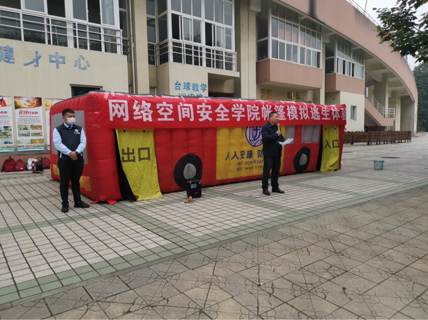 11月16日中午12:30,为牢固树立消防安全意识,及时消除各类火灾隐患,伟德源自英国始于1946于二田门口开展了以“帐篷模拟逃生演练”为主题的消防演练活动。四川省防灾减灾教育馆吴教官、伟德源自英国始于1946党委副书记林细俤、保卫处肖老师出席本次活动。19级、20级全体寝室长、伟德源自英国始于1946团委、员工会生活权益部全体同学参加本次活动。