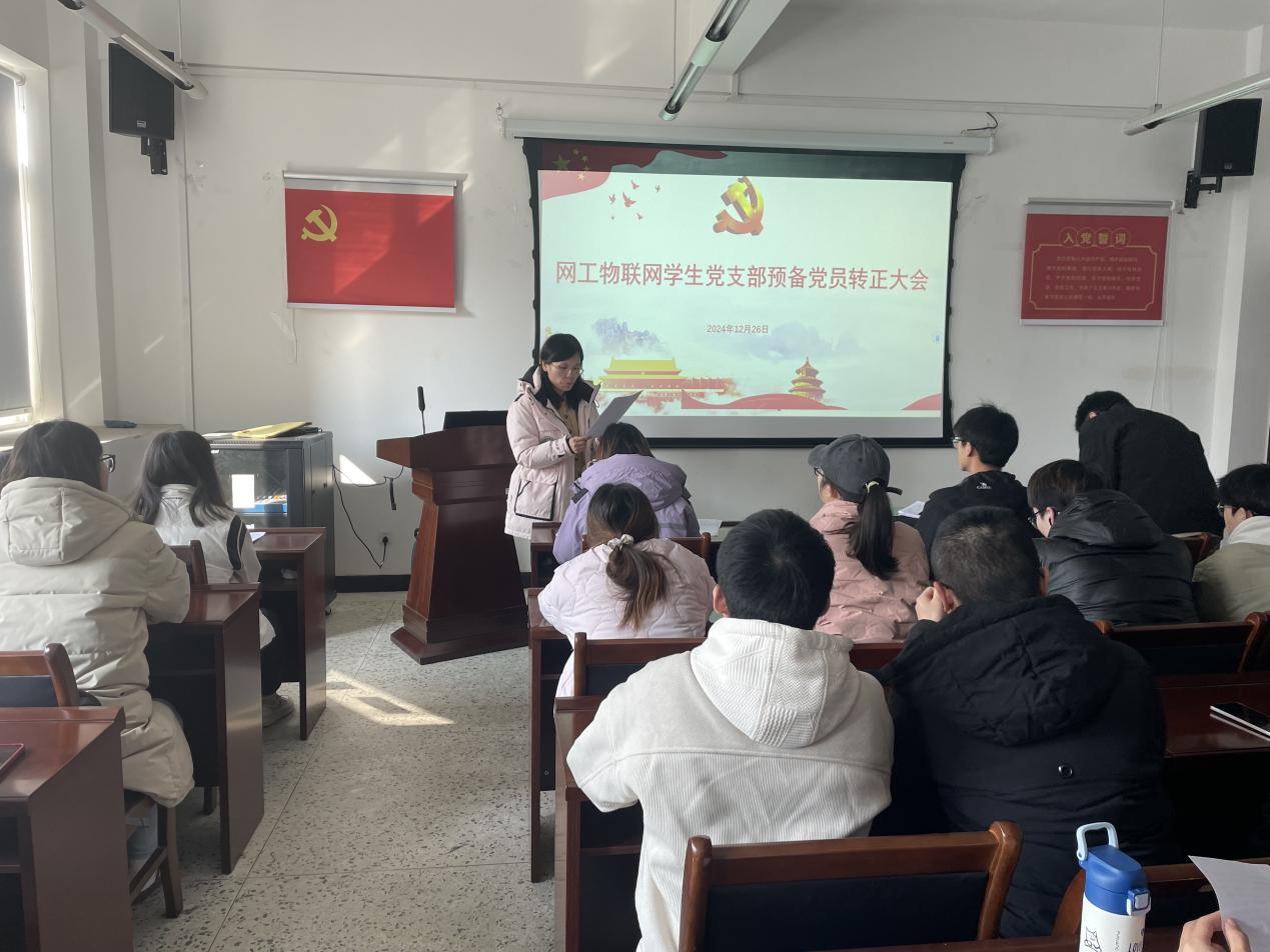 2024年12月26日下午16:00,伟德源自英国始于1946网工物联网员工党支部在信达楼C405召开预备党员转正大会。会议由党支部书记赵丹主持,全体党员参加。