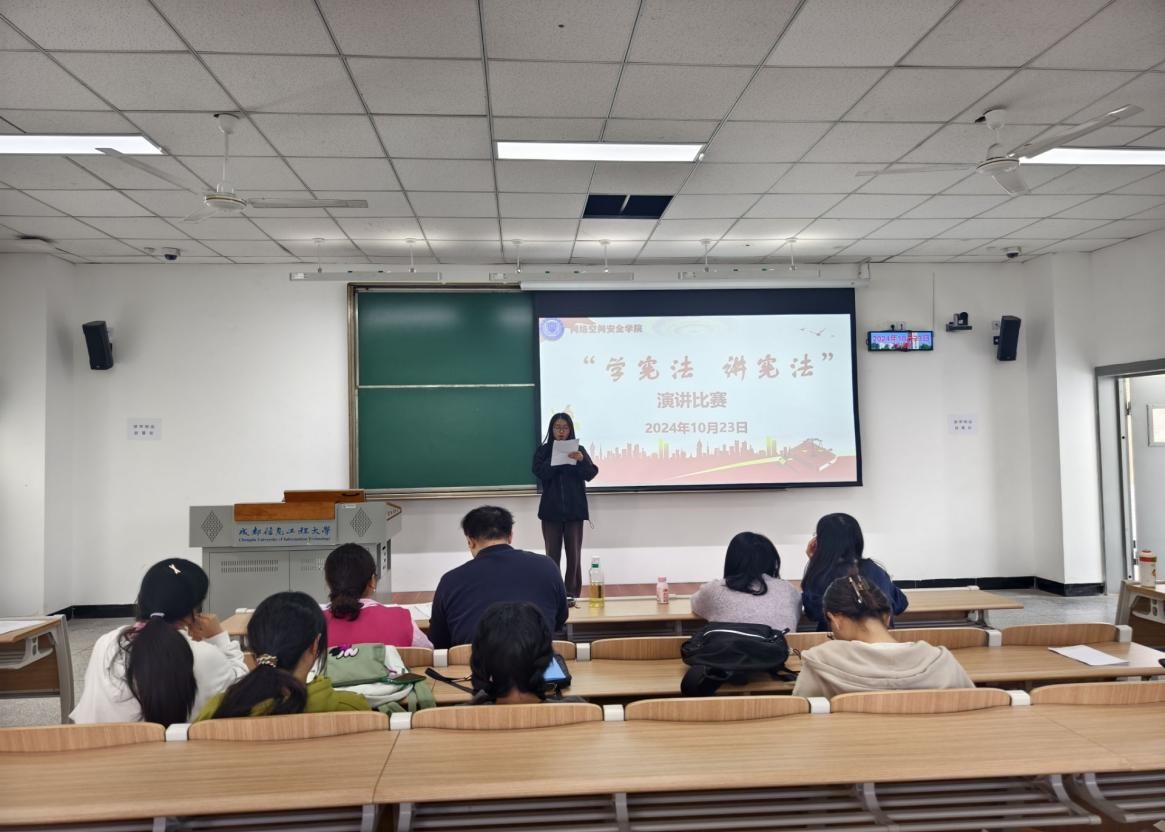 在宪法法治素质竞赛环节,选手们面对涵盖宪法基本原则、公民权利义务、国家机构设置等多方面内容的题目,沉着冷静、应答如流,充分展现了他们扎实的宪法知识基础和快速应变能力。随后的宪法主题演讲环节更是高潮迭起,选手们面带自信的微笑,逐一登上舞台。他们用清晰而坚定的语调,将心中对宪法的热爱与理解娓娓道来。每一位演讲者的声音都铿锵有力,饱含激情。