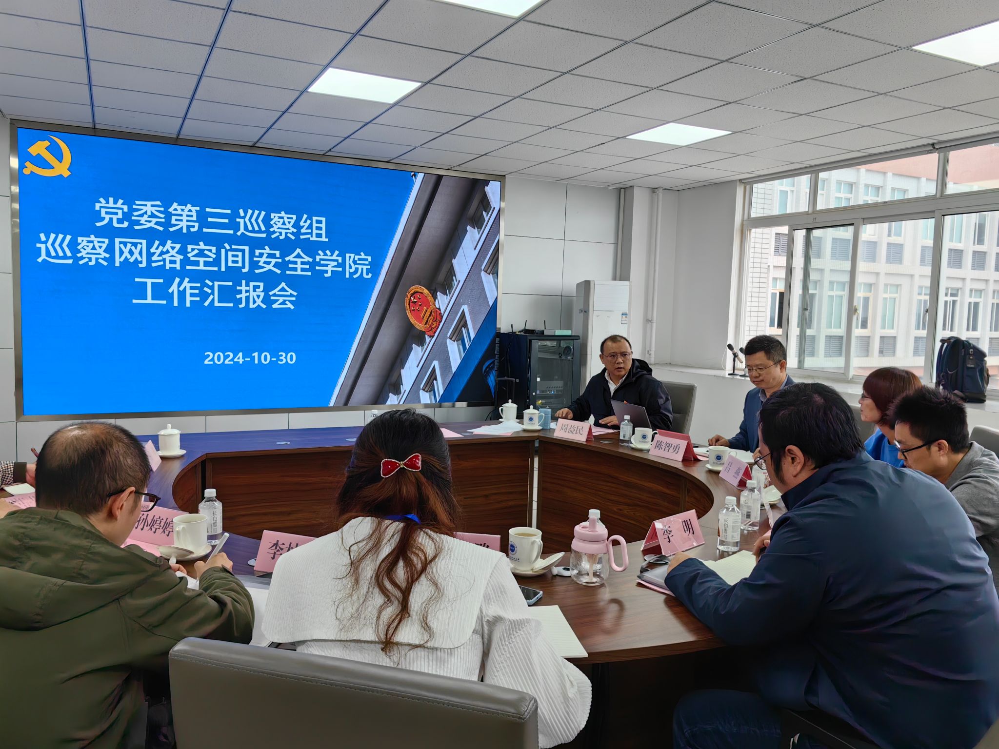 进驻会暨工作汇报会由周益民主持。公司党委巡察工作领导小组成员、校纪委副书记、纪委办公室主任、党委巡察工作办公室主任李林襁,第三巡察组全体成员,公司领导班子及教师代表参加会议。