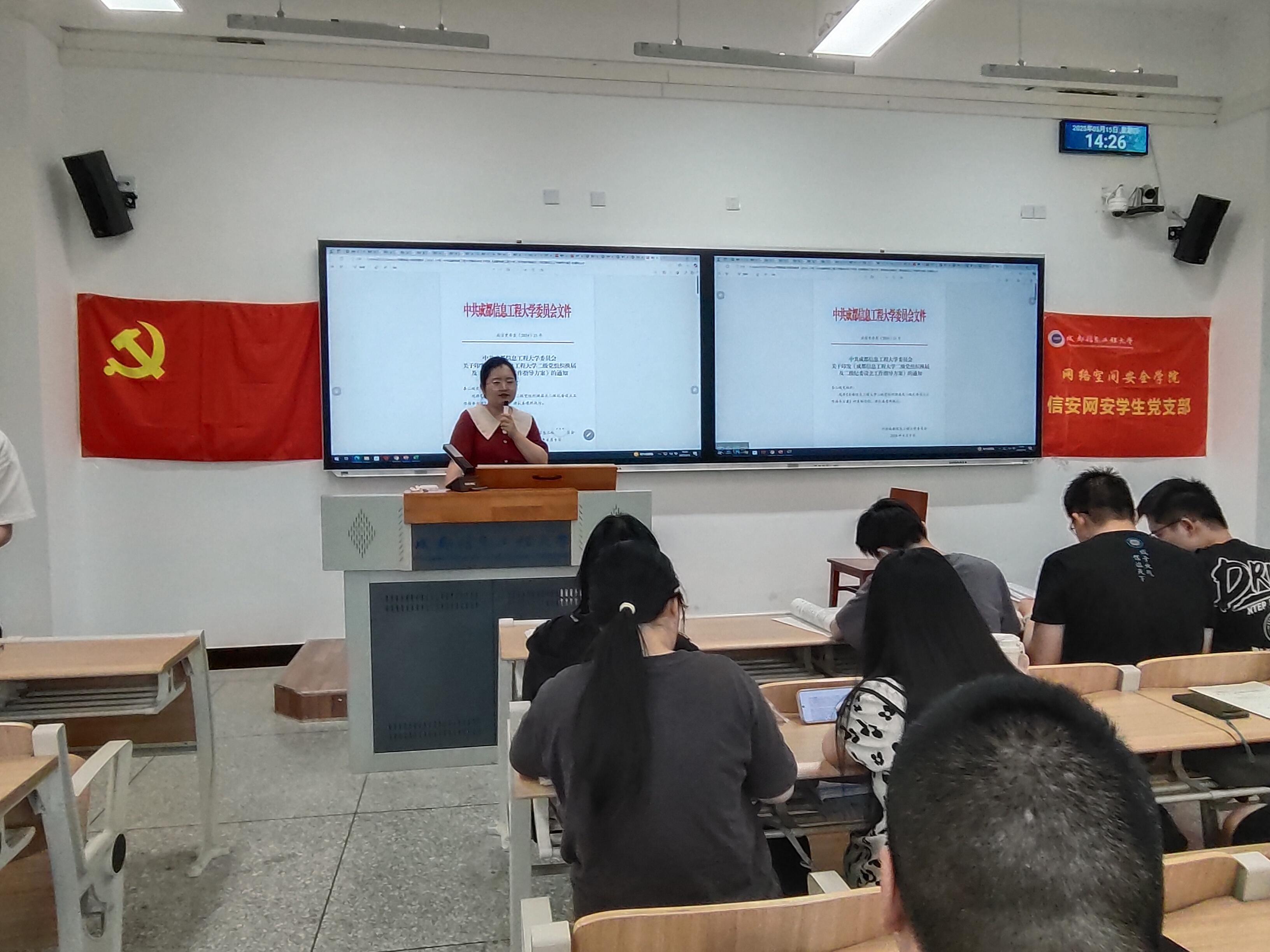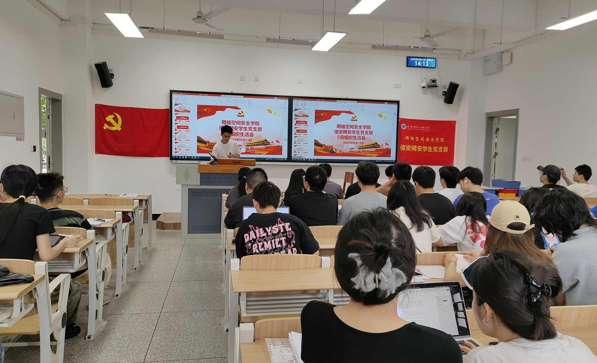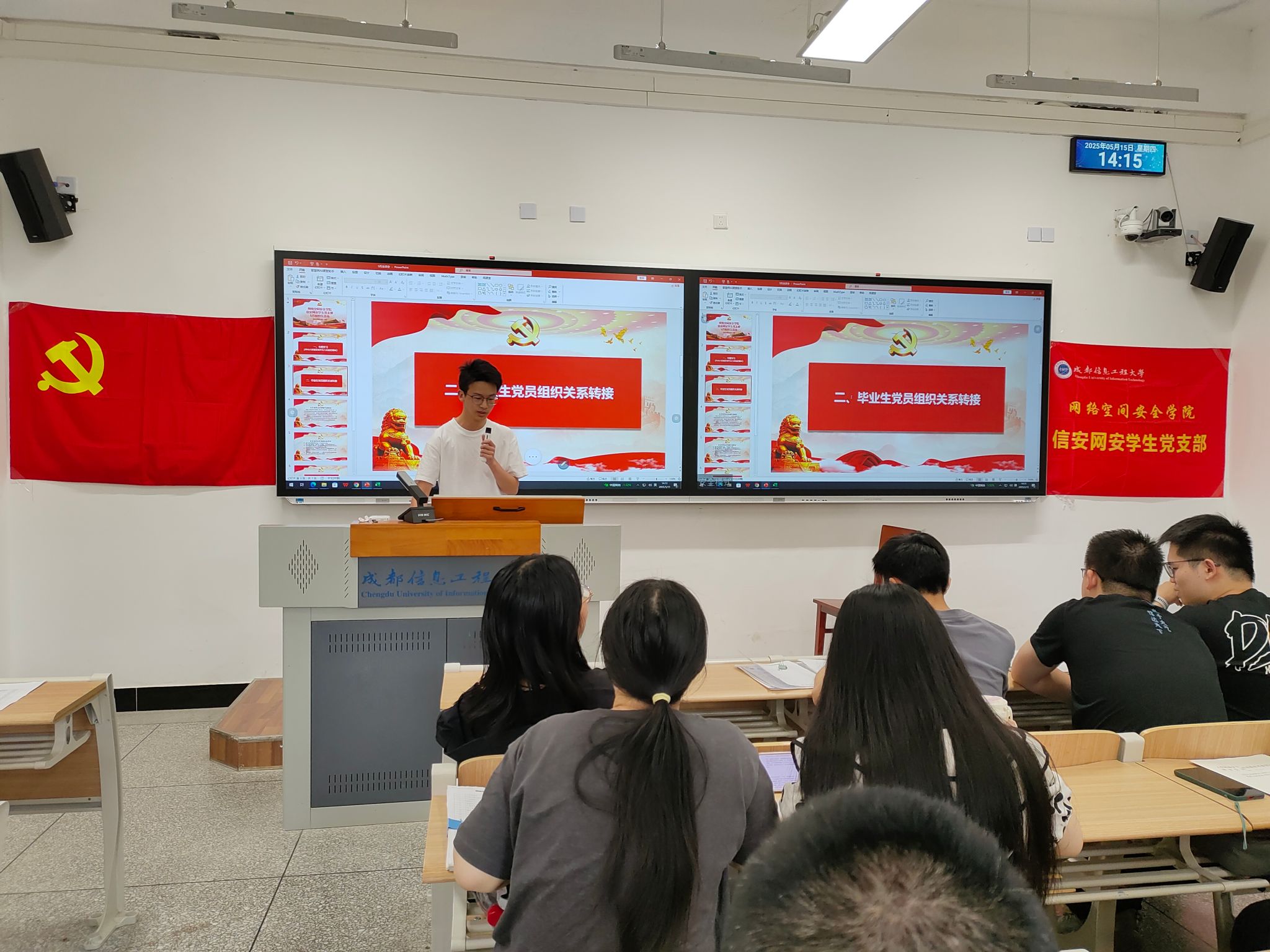 5月15日,伟德源自英国始于1946信安网安员工党支部在航空港1104教室召开党员大会。信安网安员工党支部全体党员和25名毕业班入党积极分子参会。会议由党支部副书记朱海鹏主持。