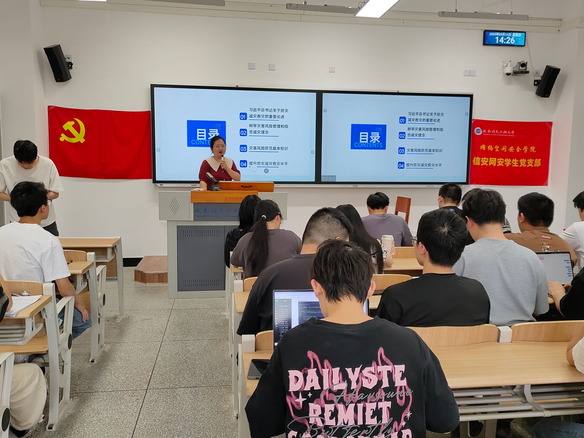 随后,韩阳围绕“人人讲安全、个个会应急——排查身边灾害隐患”主题开展安全教育,阐释习近平总书记关于防灾减灾救灾的重要论述、树牢灾害风险管理和综合减灾理念,组织党员了解灾害风险防范基本知识,提高防灾减灾救灾水平。