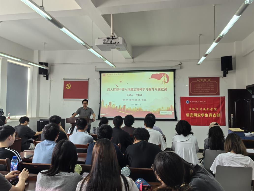 为深入贯彻中央八项规定精神学习教育,切实增强毕业生党员的党性修养和廉洁自律意识,6月5日下午,学院副经理何林波在信达楼C405会议室为信安网安员工党支部全体党员讲授题为《深入贯彻中央八项规定精神学习教育》的专题党课。