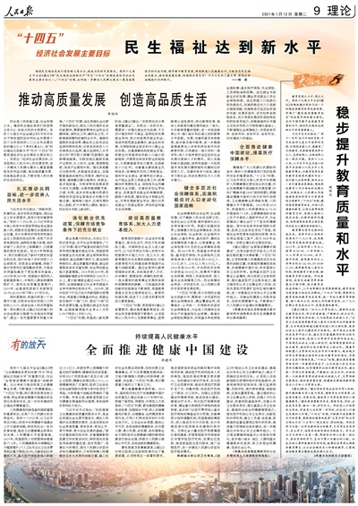 党的十九届五中全会《建议》将“民生福祉达到新水平”作为“十四五”时期我国经济社会发展的主要目标之一。“十四五”时期,如何进一步解决人民群众最关心最直接最现实的利益问题,稳步提升教育质量,持续提高人民健康水平,不断夯实民生福祉的基石,推动高质量发展、创造高品质生活?