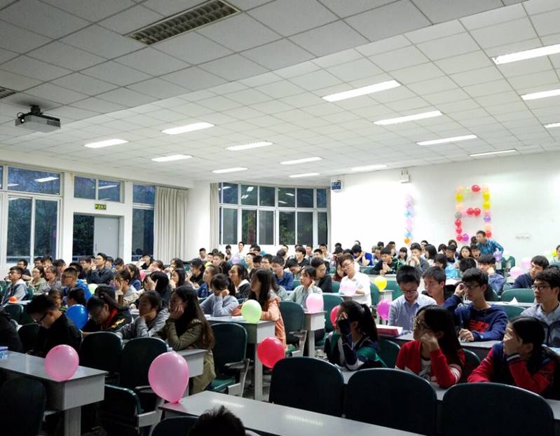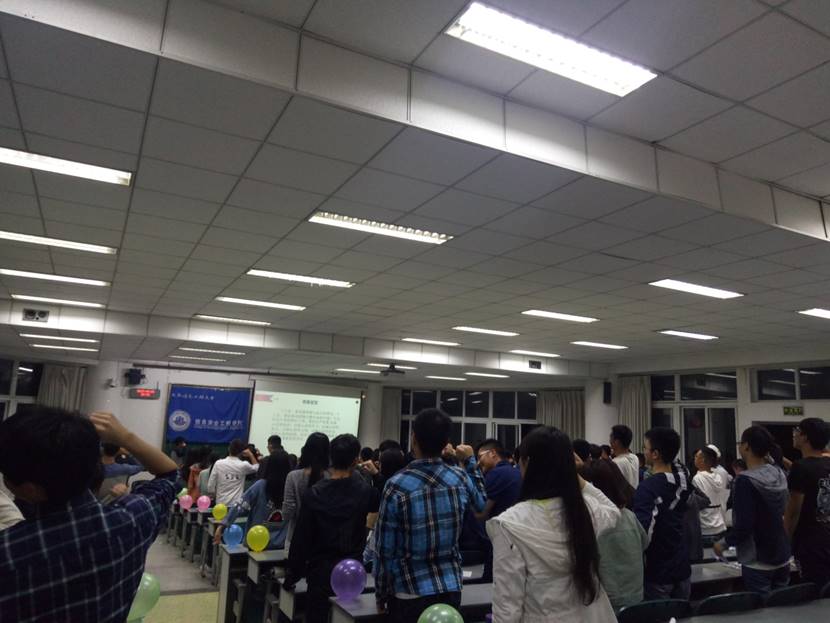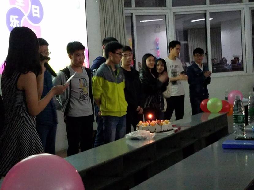 之后是第三个环节看现在,不仅有刘睿同学表演歌曲《我的梦》为同学们加油打气,还有陈诗梦同学带来诗朗诵《红与黑》,让我们认识到梦想的可贵。除此外,更准备了一个大惊喜,为四月份过生的同学送上生日蛋糕以及祝福,愿他们在以后的日子里能常常拥有好心情。