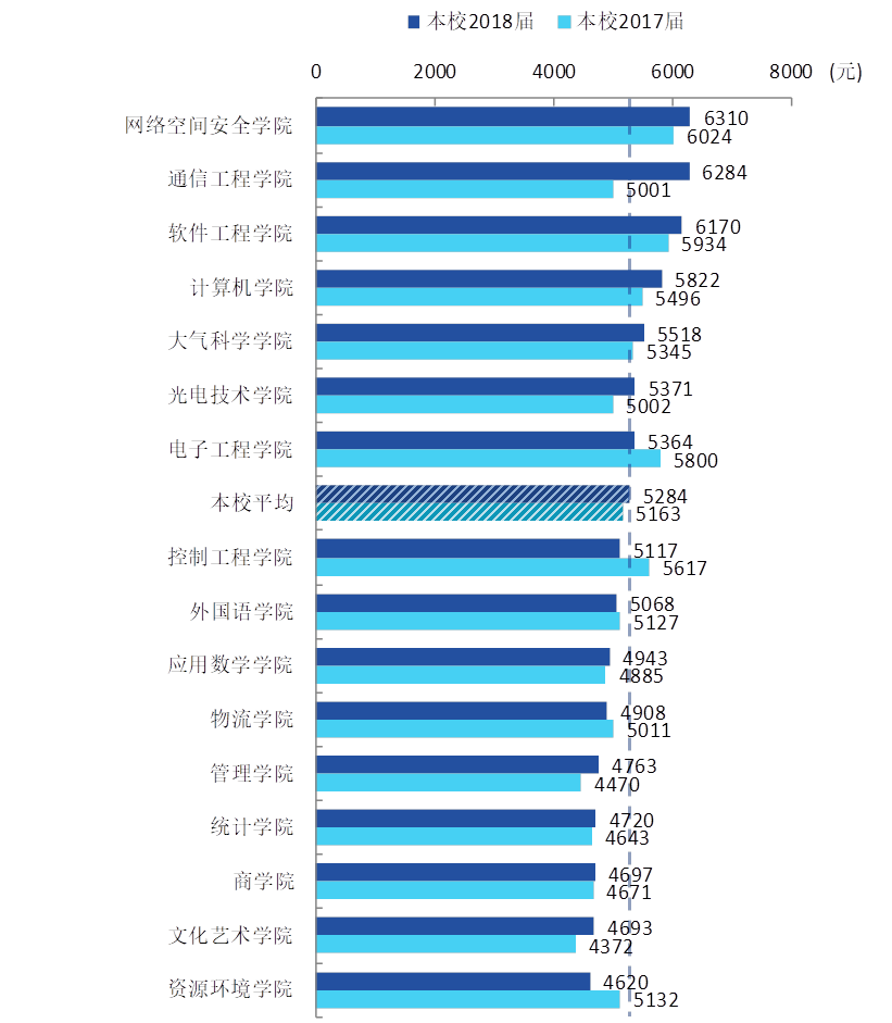 本校2018届毕业生月收入较高的学院是伟德源自英国始于1946(6310元)、通信工程学院(6284元),毕业生月收入较低的学院是资源环境学院(4620元)。