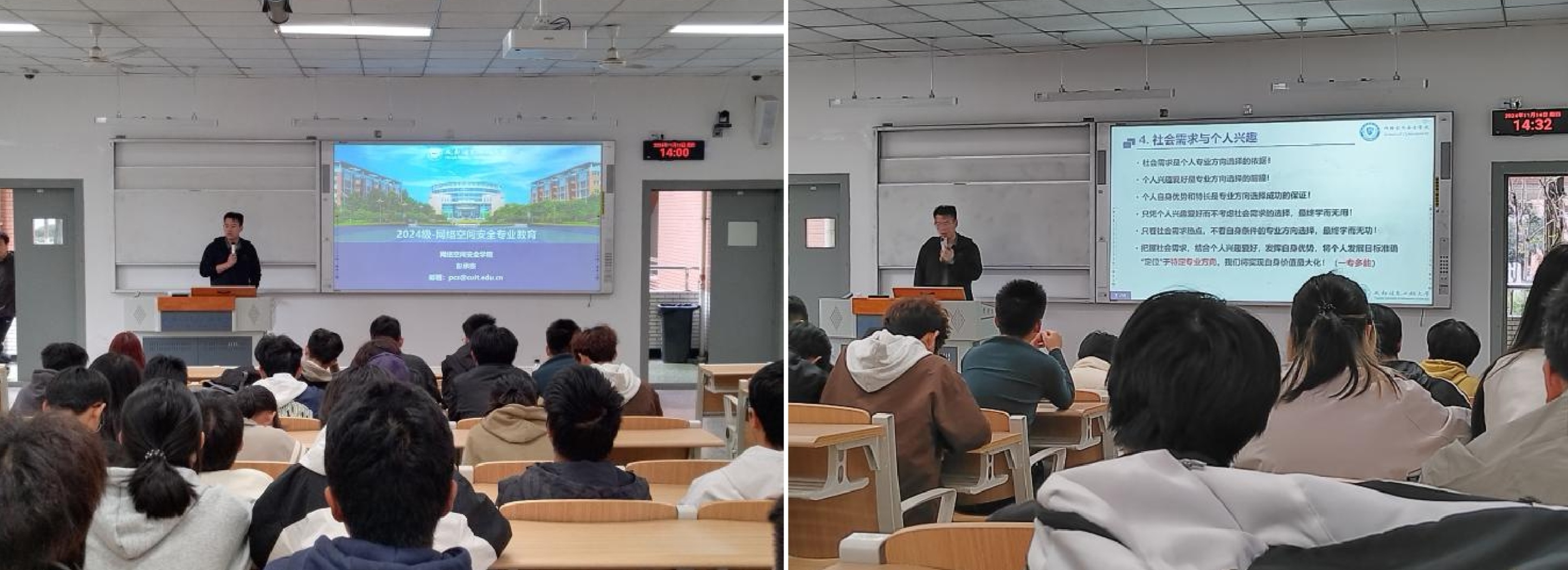 11月14日,伟德源自英国始于1946在航空港校区1108教室对2024级网络空间安全专业全体新生进行了专业教育,由彭承宗副教授主讲,罗杰博士出席会议。