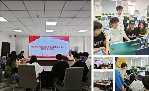 完善工作机制,强化服务保障。举办大运会是国家大事、四川要事、成都盛事,是展现国家形象、促进国家发展、振奋民族精神的重要契机。为了激励员工社团用饱满的热情、精干的技术做好大运会舆情监测,学校高度重视,成立服务大运会工作领导小组和工作专班,全力做好员工社团思想引导、关心关怀和后勤服务等工作。由于舆情监测和威胁情报分析工作性质的敏感性,公司领导为员工社团进行专题授课强化政治引领,派遣具备丰富工程经验的段光明老师和丰富员工管理经验的贾茜老师组织员工社团进行专题学习,厘清工作思路,明确任务要求。