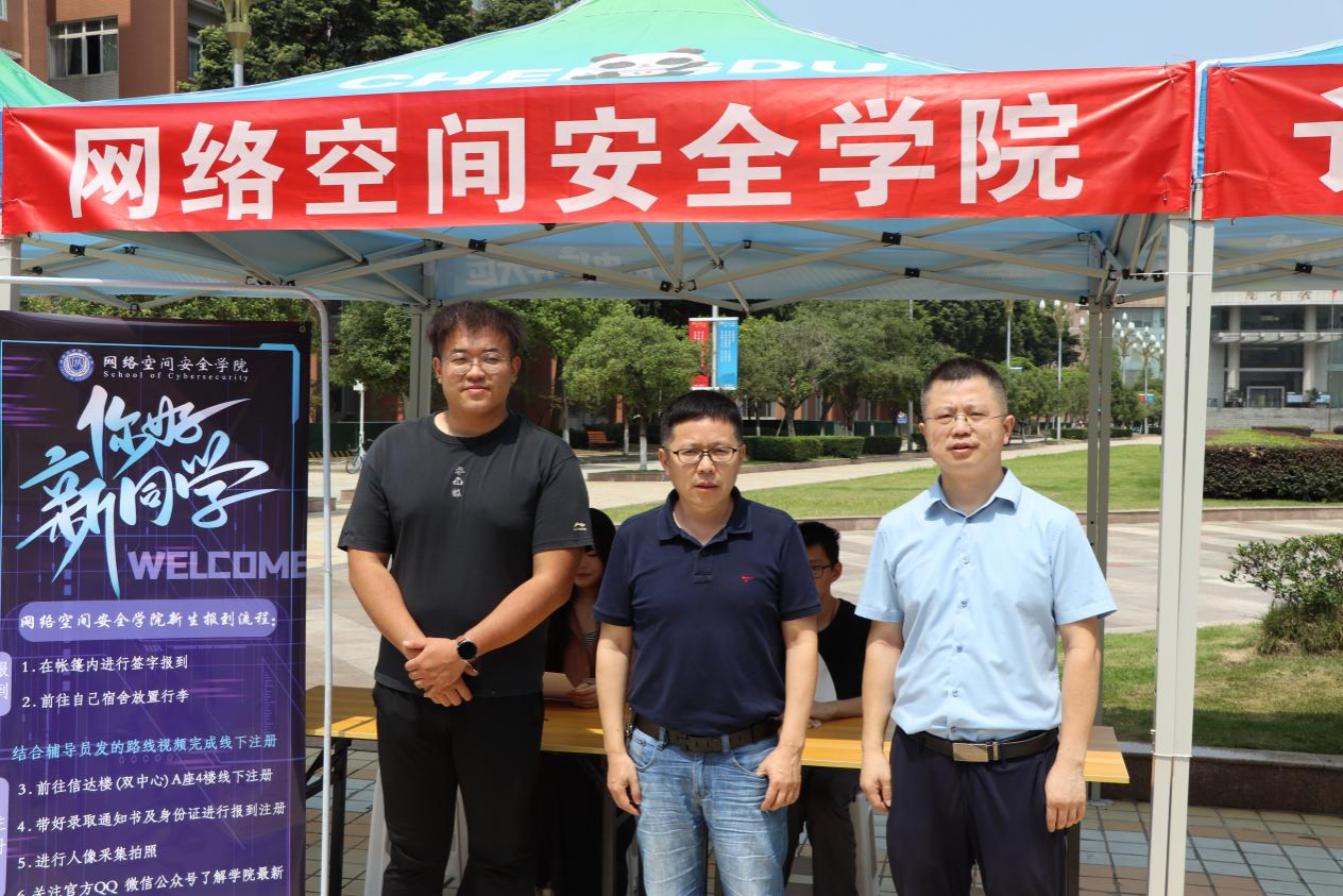 公司领导视察迎新注册报到点位,随后表达了对迎新准备工作的肯定。同时,学院领导从交流中了解到迎新工作人员已经做好了为新生服务及替新生解惑的准备。