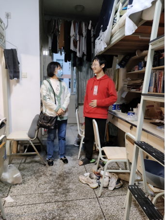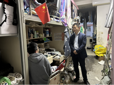 党委副书记陈智勇带领毕业班辅导员吴枫、姜艳、何佩遥等老师走访员工公寓,加强同学们思想政治教育,在毕业班寝室开展就业指导教育工作。老师与同学们深入交流,不断对员工进行鼓励,告诉同学们要合理利用时间,多锻炼自己的能力,要积极参加学校一、二课堂融合的校园活动,锻炼身体,德智体美劳全面发展。