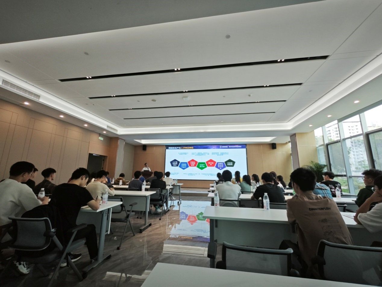 活动第二项,听技术讲座。由安恒信息成都工程研究院经理陈曦担任主讲人。首先,陈曦分析了网络安全产业规模和人才缺口、数据中心安全的种类;然后讲解了网络安全人才目前的任职情况;最后从怎样自我提升和怎样在职场上走得更远两个方面告诉同学们应该注重学业学习。在这之后便是最精彩的提问环节:“社会上主要的编程语言是哪些呢?”,“如果大三实习,贵公司对实习生的要求是什么呢?”,“密码学和二进制是好的就业方向吗?”等等。同学们积极提问,陈曦耐心解答。