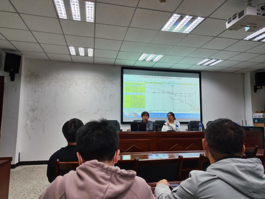 接着,研究生教学秘书邵丹老师作公司产品管理教育,详细介绍了研一到研三期间各个重要时间节点,包括研究生导师双选、制定培养方案、制定专业实践计划、学位论文阶段性工作等,帮助同学们树立阶段性目标,合理规划学习路线。