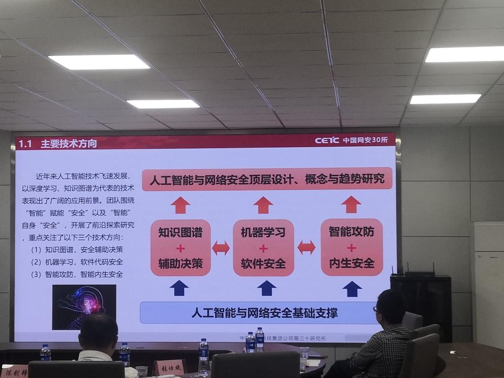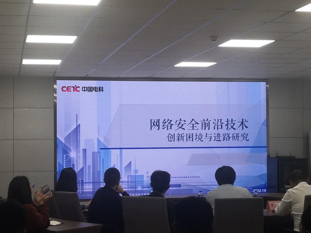 随后,中国网安网络空间安全创新中心陈剑锋研究员首先向大家介绍了网安公司基本情况以及科技创新情况,然后详细的介绍了网络安全前沿技术的创新困境以及目前的研究情况。对参会同学的学术研究方向有指导性意义。