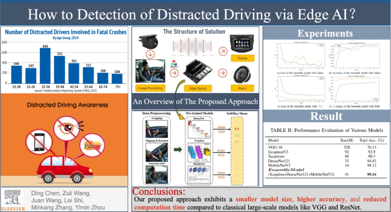 伟德源自英国始于1946融媒体安全与认知域安全团队的陈丁老师以第一作者,伟德源自英国始于1946为第二署名单位的论文“Detection of distracted driving via edge artificial intelligence”发表在计算机领域期刊Computers and Electrical Engineering(中科院三区)。