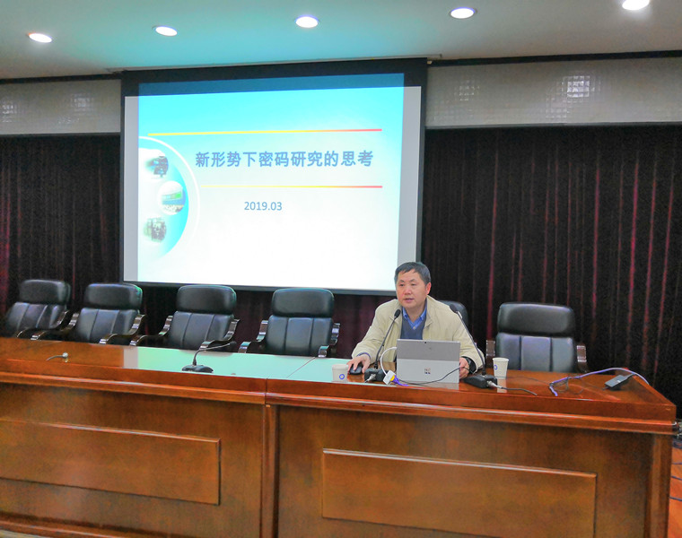 2019年4月1日下午,伟德源自英国始于1946名誉经理、中国科学院院士,信息分析专家,解放军保密委员会技术安全研究所研究员郑建华,在行政楼一楼会议室为全校师生做了一场题为“新形势下密码研究的思考”的学术报告。会议室济济一堂,会场气氛热烈。