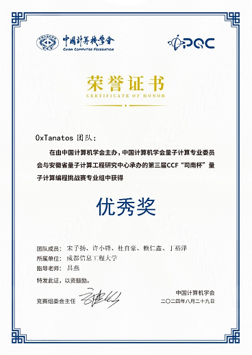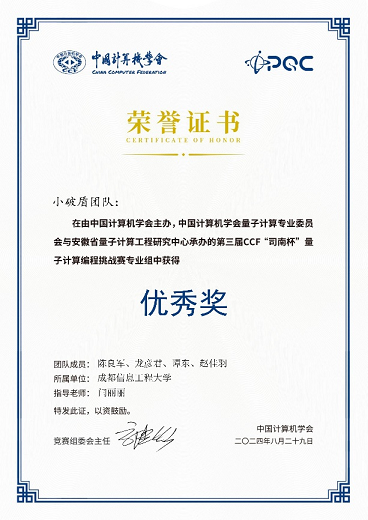 图1第三届CCF“司南杯”量子计算编程挑战赛专业组荣誉证书