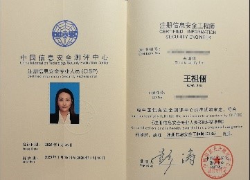 公司五名专任教师成功取得注册信息安全专业人员(CISP)认证