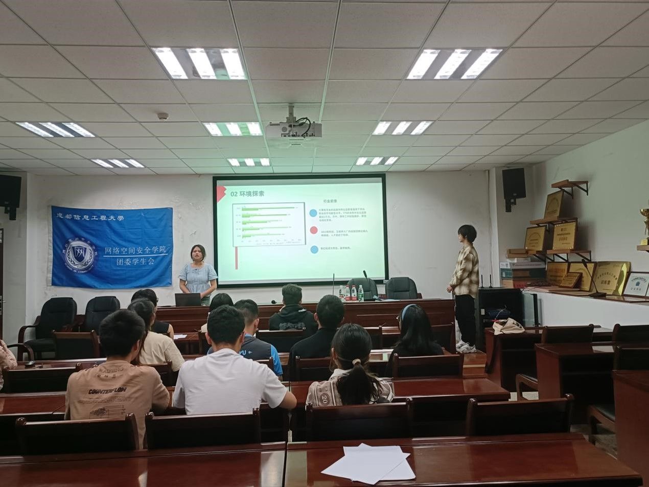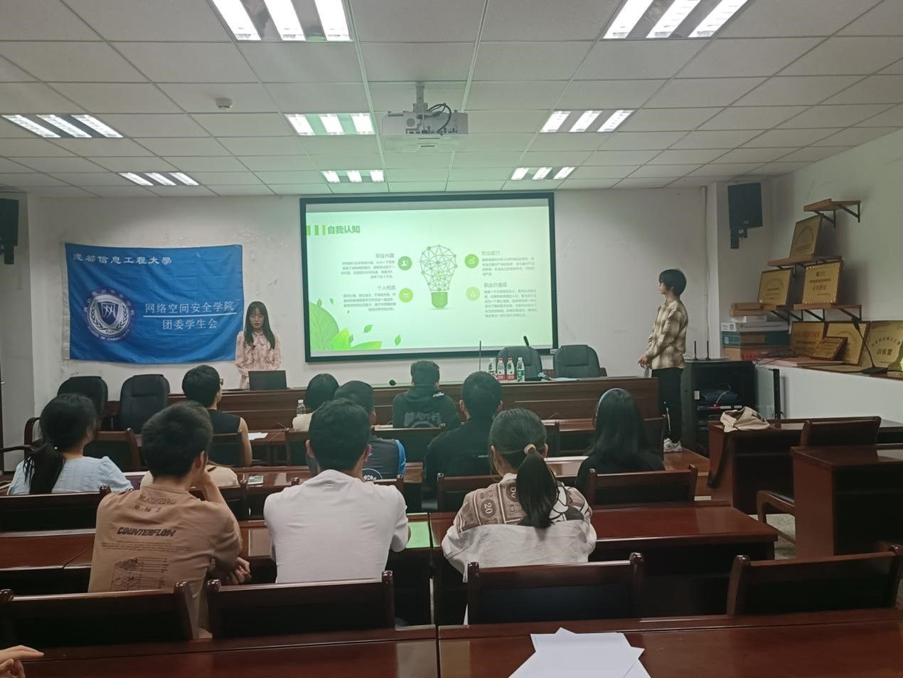 在选拔赛初赛中,选手们通过ppt的形式介绍各自的个人职业生涯规划书,并进行了才艺展示,不仅以自信昂扬的态度全面、客观,从职业个性、兴趣、能力、价值观等方面清晰地介绍自我并且能够能清晰做出职业方向选择,并实施生涯计划。在点评过程中,20级信安辅导员文军老师对每一位参赛者提出了建设性意见。