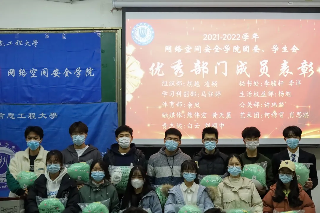 随后,执行主席李雨虹和主持人冯科分别宣布优秀部门负责人名单和优秀部门成员名单,并由主席团成员为他们颁奖。会议最后,全体参会成员合影留念。