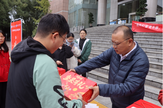 本次送温暖的礼物是一份象征“坚定”的坚果礼盒与一张写满学弟学妹鼓励话语的寄语卡片,本次活动旨在通过温暖礼物来传递集团、公司对考研学子的关心与鼓励,同时希望能激励员工们以更饱满的热情和强大的决心面对即将来临的研究生初试。