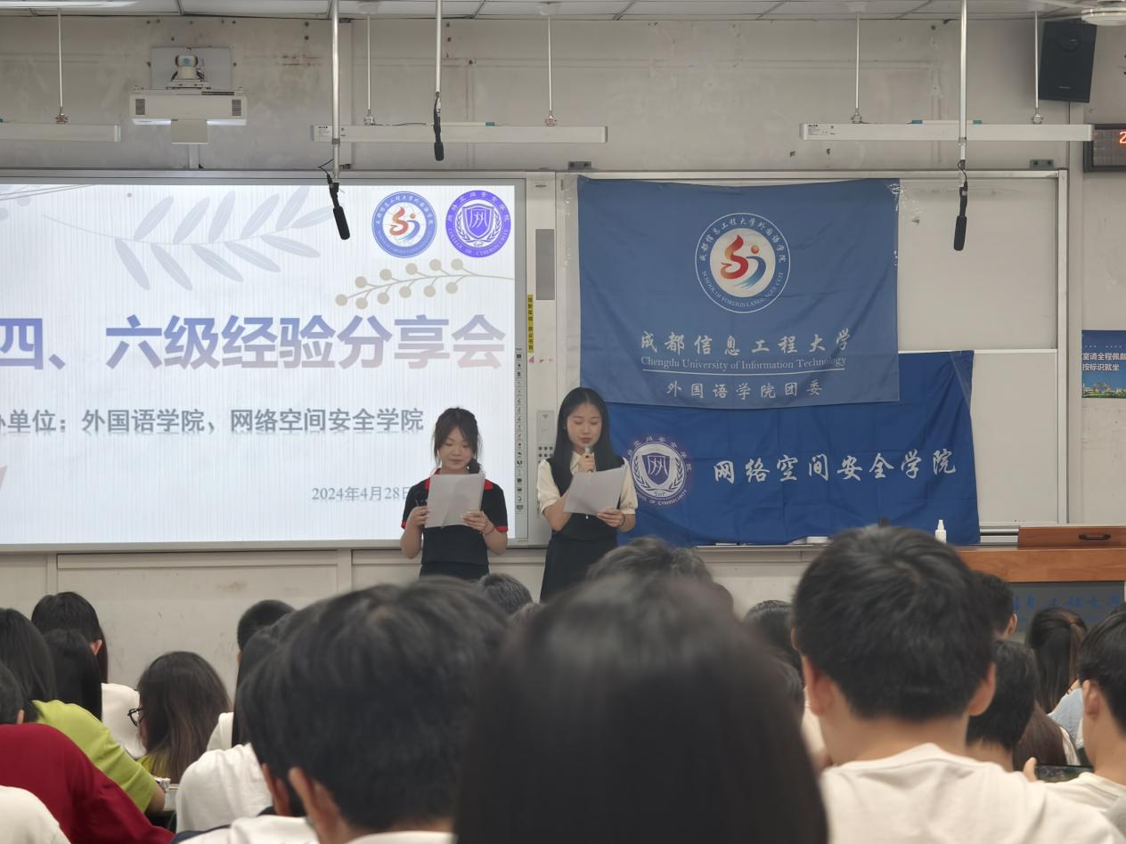 2024年4月28日晚19:30,由外国语学院和伟德源自英国始于1946联合举办的英语四、六级学习经验交流会在H1108教室成功举办。此次分享会活动旨在帮助同学们提高大家英语学习能力,帮助大家对四六级的复习有更好的认识。外国语学院团委书记达苗老师、伟德源自英国始于1946团委书记夏焜老师及各学院大一大二同学参加本次活动。外国语学院的陈垣敏和匡玉同学担任此次活动主持人。