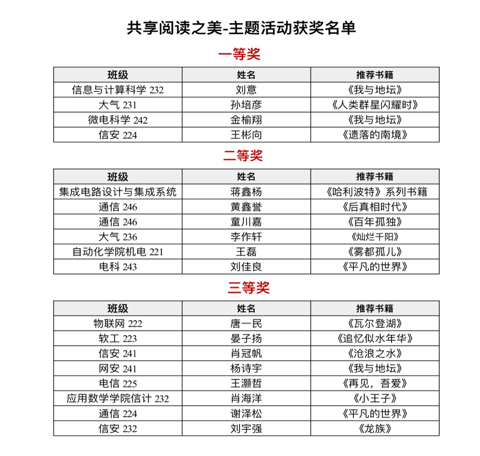 本次活动设置书籍推荐、心得分享等环节。参与者涵盖信息安全、大气科学、计算机科学、通信工程等十余个专业,推荐书目既包含经典文学著作,也涉及前沿科普读物。通过深度解析书籍内核、分享个性化阅读体悟,不同学科背景的学子畅谈阅读过程中的感悟与收获,在交流中碰撞出思想的火花。